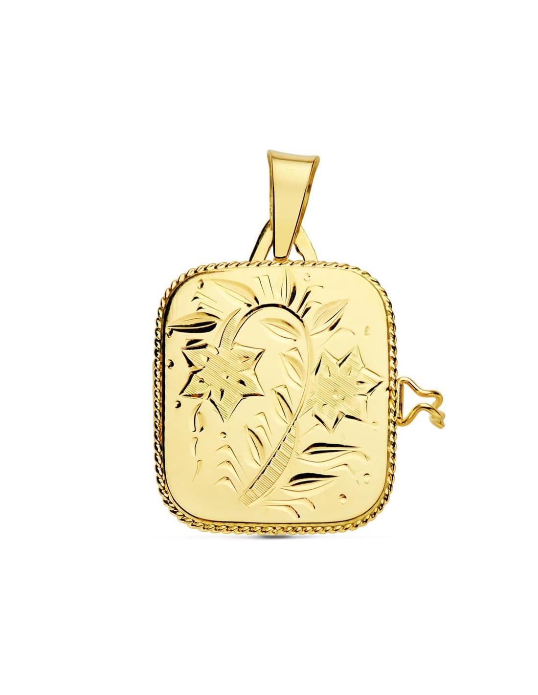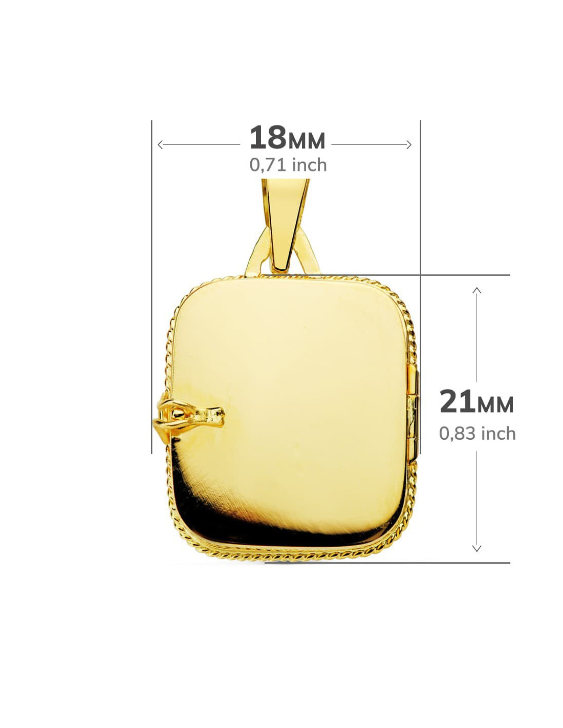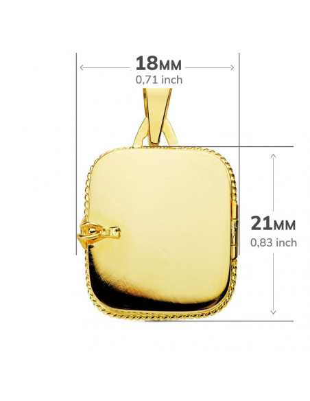 9K GUARDAPELO DIJE PORTAFOTOS CUADRADO LABRADO. 21X18 MM