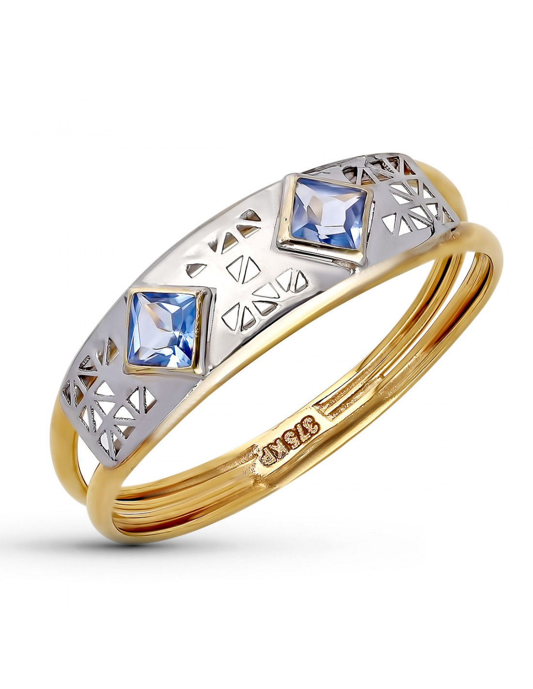 9K SORTIJA ORO BICOLOR AGUA MARINA