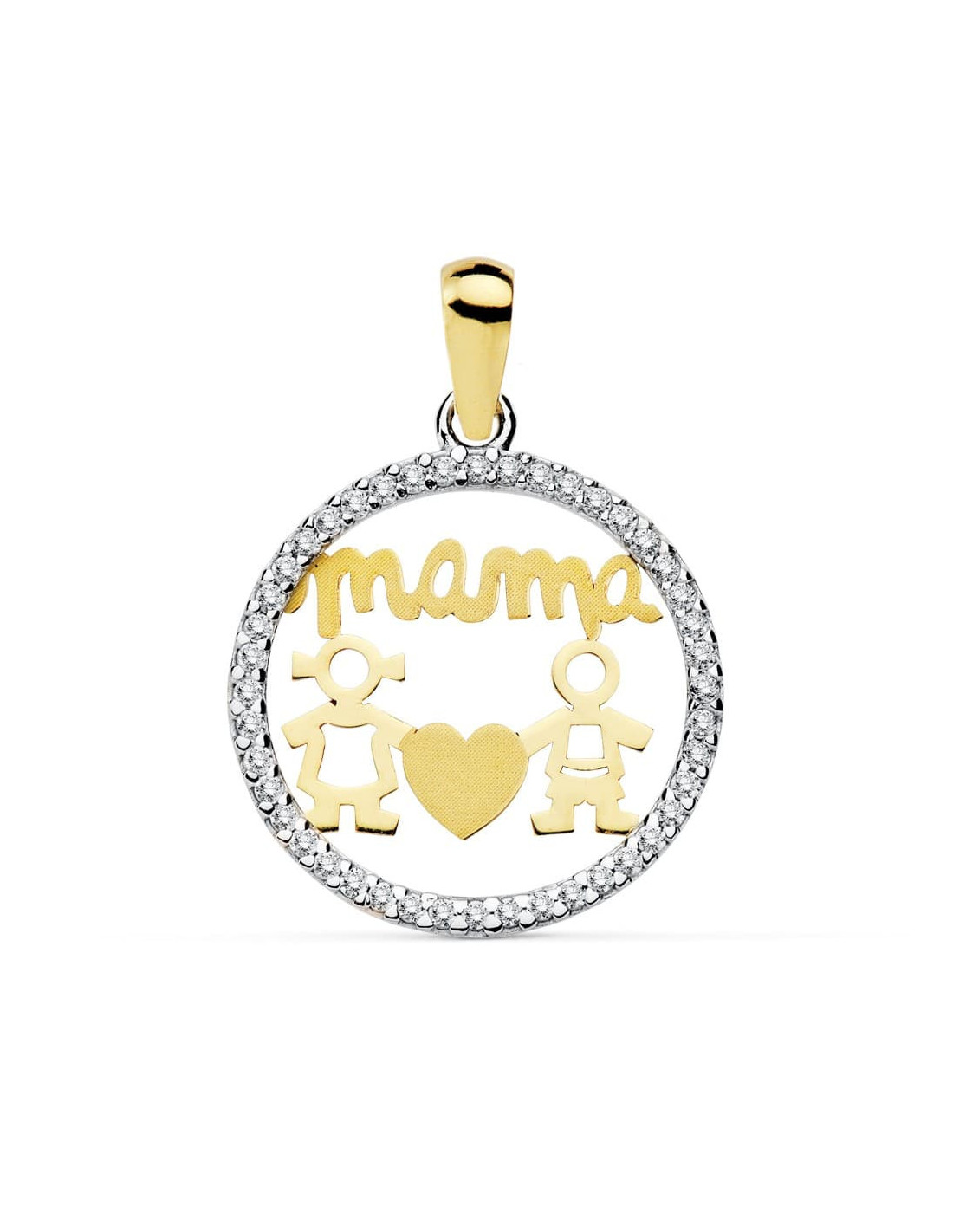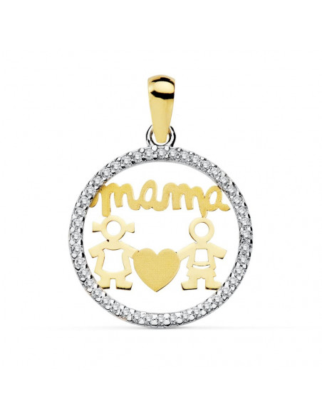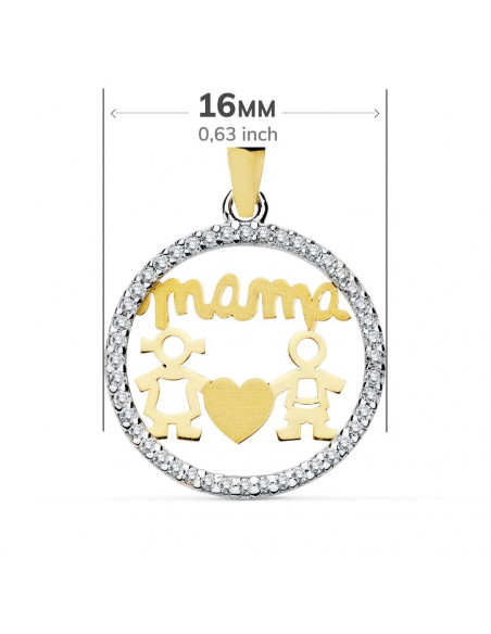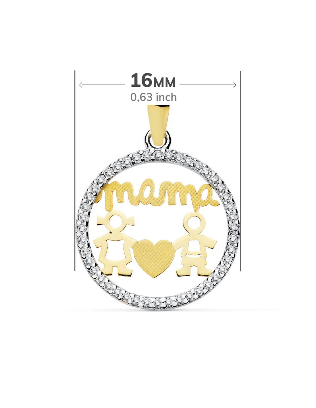9K COLGANTE BICOLOR MAMA NIÑO Y NIÑA CIRCONITAS 16 MM
