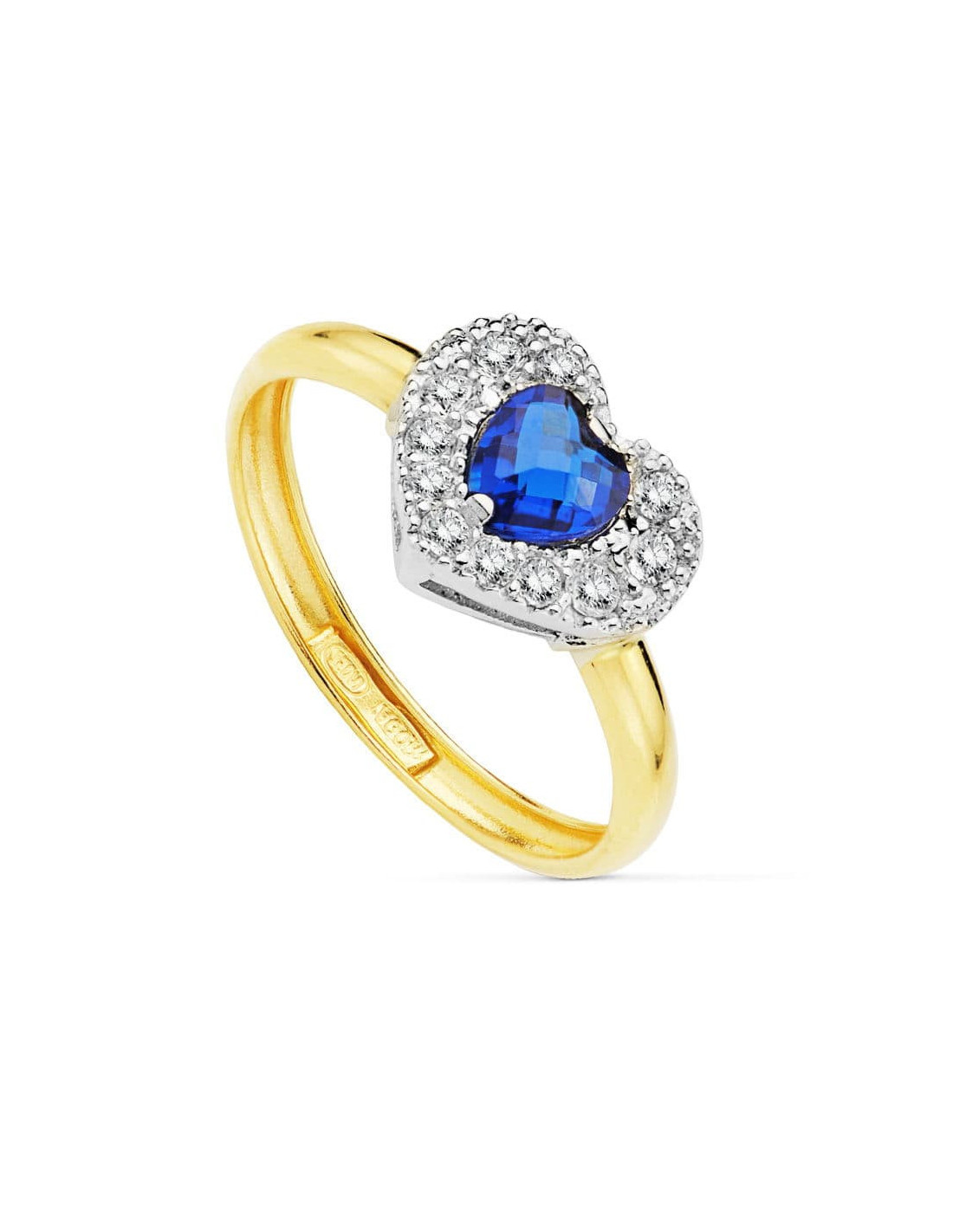9K SORTIJA PIEDRA AZUL CORAZON 5 MM CIRCON