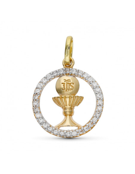 9K COLGANTE OOR BICOLOR CALIZ COMUNION 16 MM