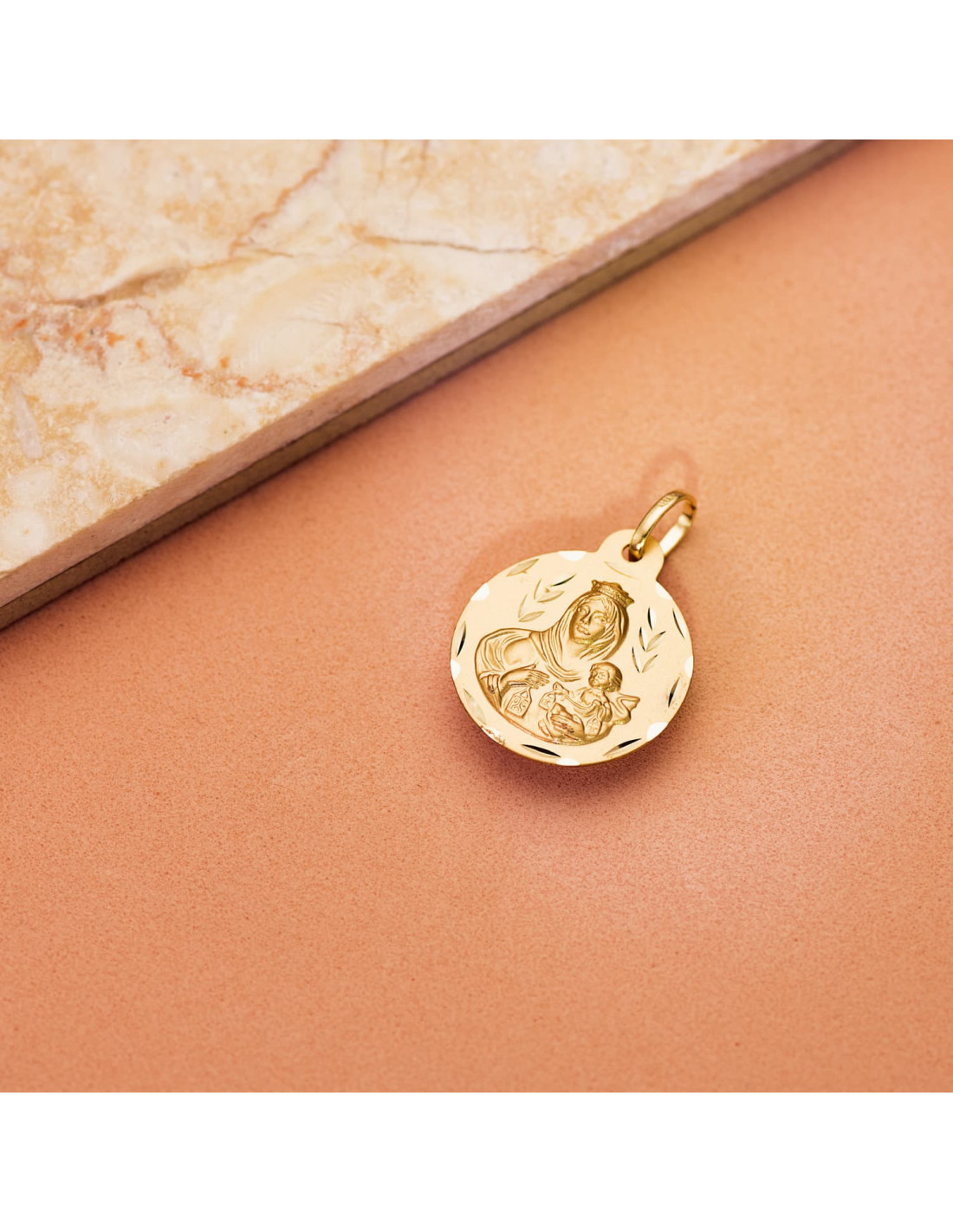 9K MEDALLA TALLADA VIRGEN DEL CARMEN 18 MM