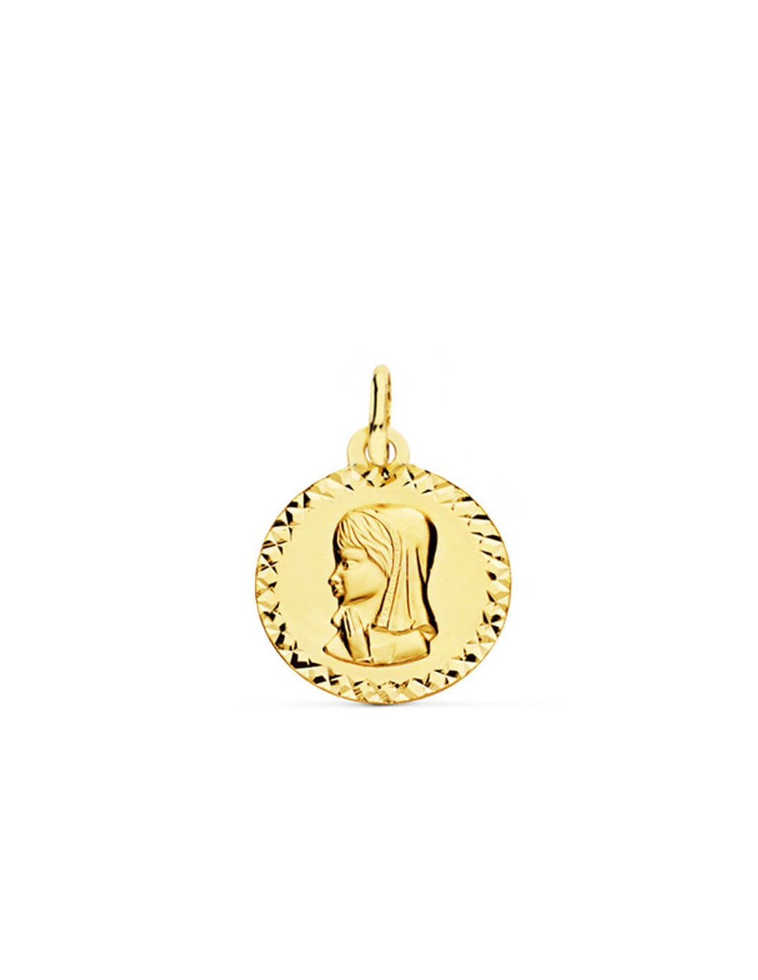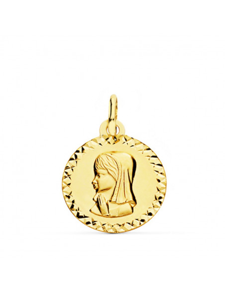 9K MEDALLA ORO AMARILLO VIRGEN NIÑA CON CERCO TALLADO 16 MM