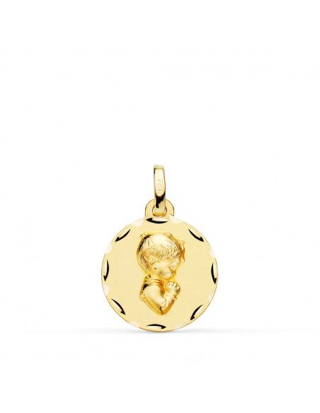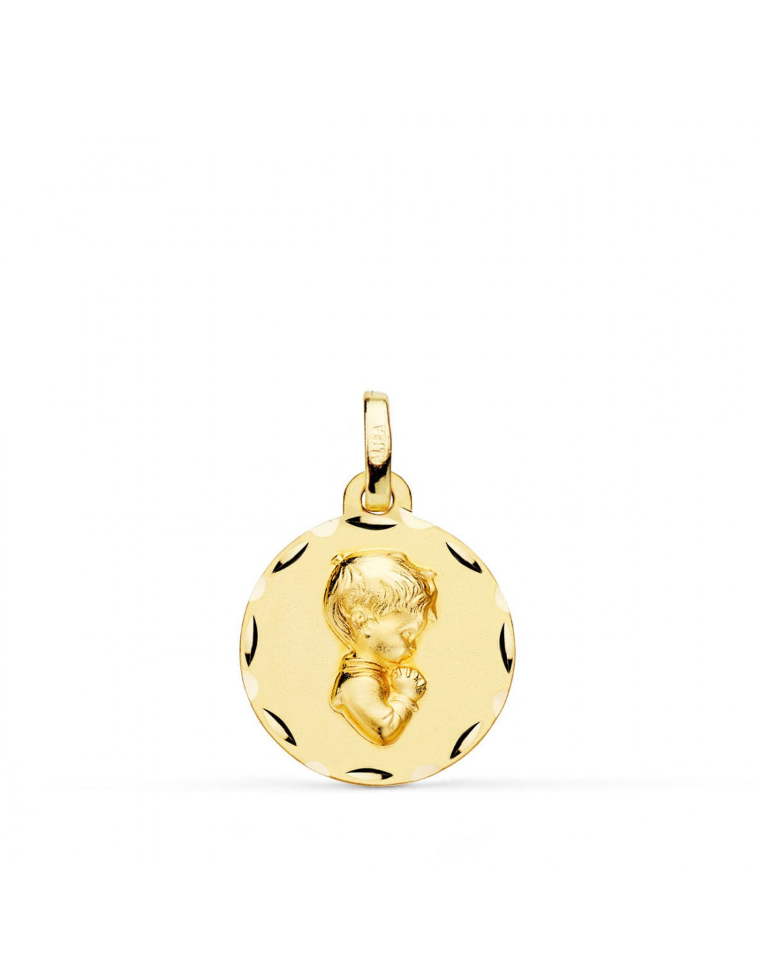 9K MEDALLA NIÑO DE COMUNION PERFIL TALLADA 16 MM