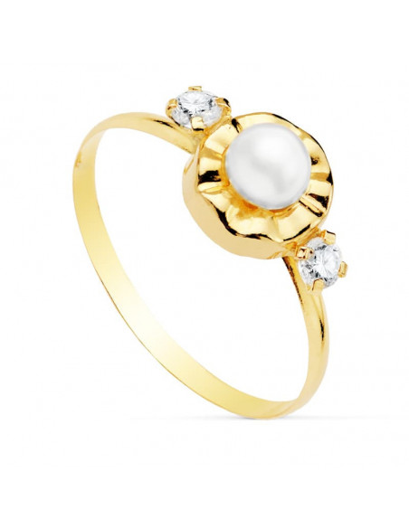 18K SORTIJA CIRCONITAS Y PERLA 4 MM