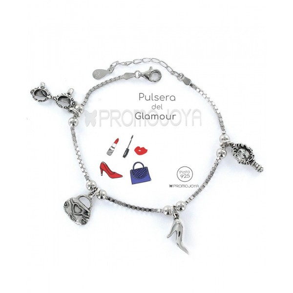 Pulsera Eres lo mas Glamour cadena veneciana rodiada con colgantes