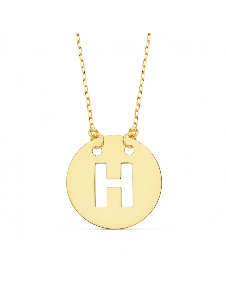 18K COLGANTE LETRA " H " 15 MM CADENA FORZADA 42 CM