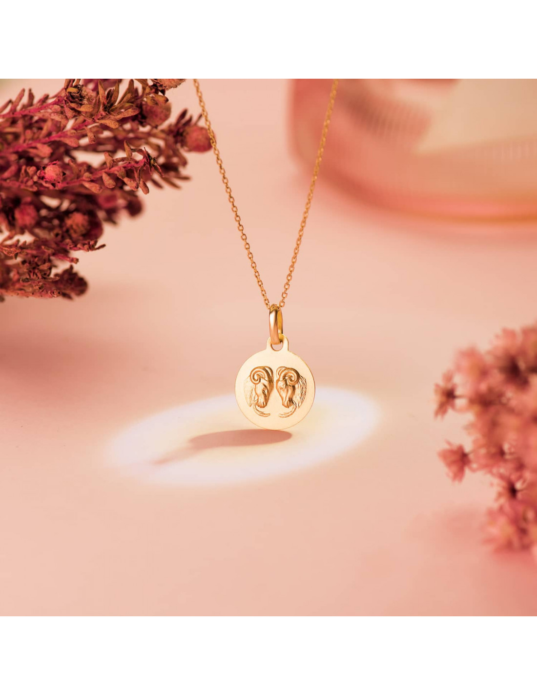 18K MEDALLA HOROSCOPO ORO AMARILLO ARIES MATIZADA 13 MM
