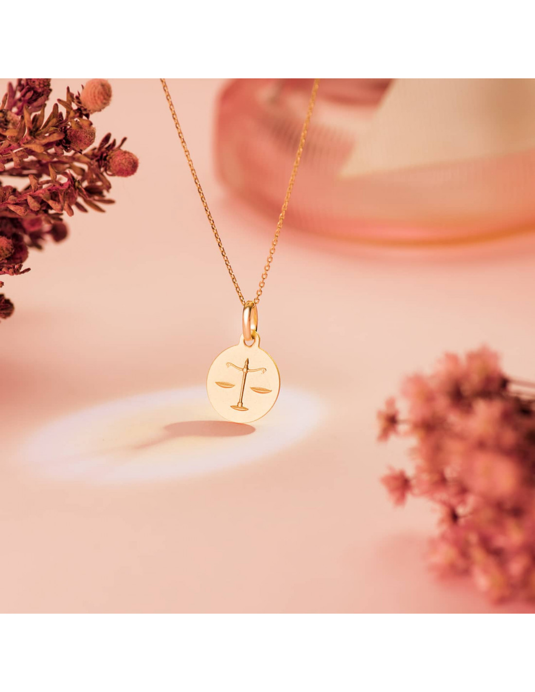 18K MEDALLA HOROSCOPO ORO AMARILLO LIBRA MATIZADA 13 MM