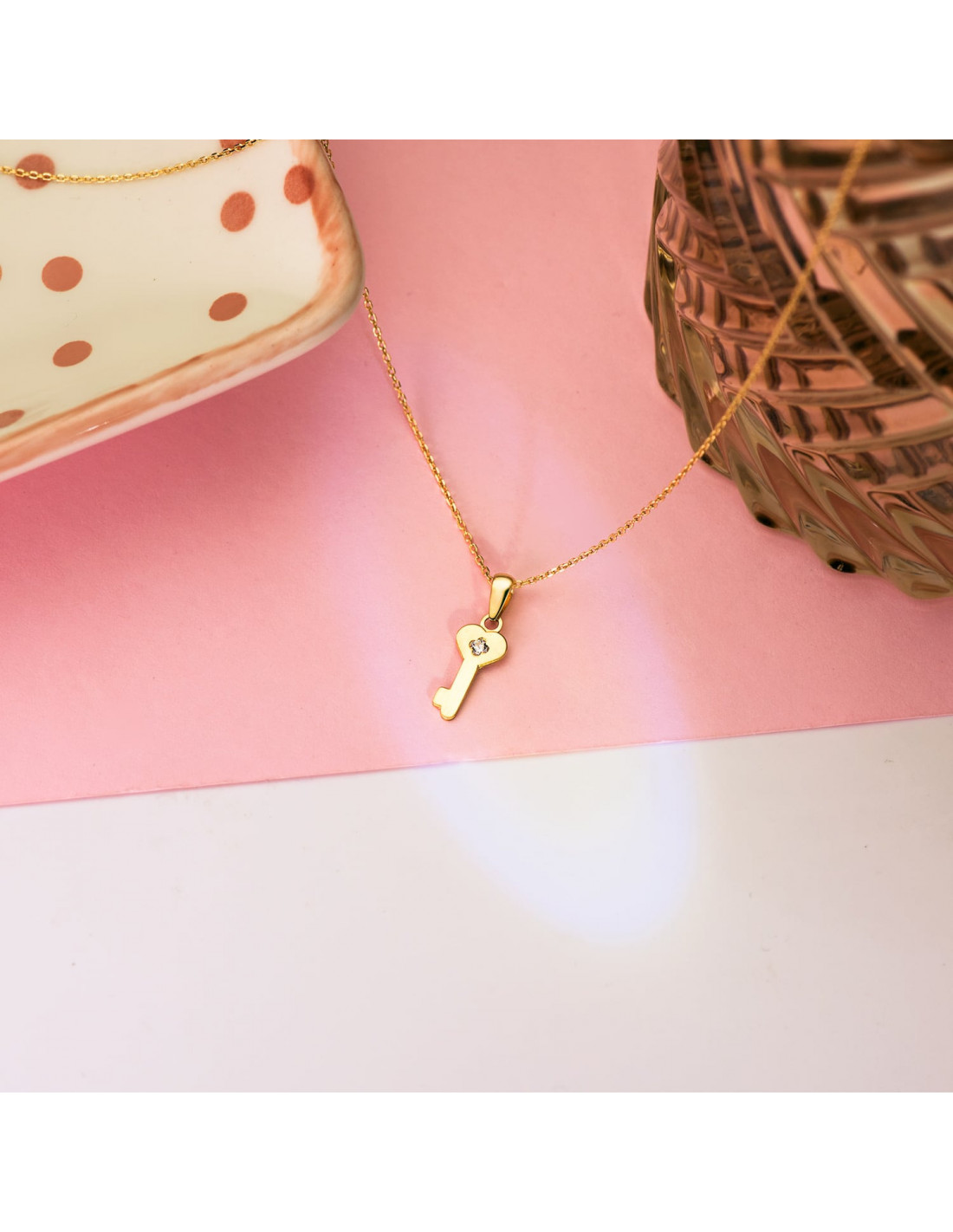 18K COLGANTE ORO AMARILLO LLAVE LISA EN BRILLO CON CIRCONITA 14 X 6 MM