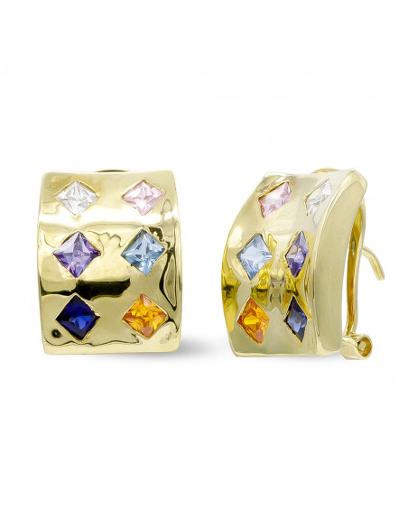 18K PENDIENTES ORO AMARILLO PIEDRAS COLORES CIERREOMEGA