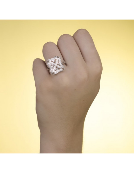 18K SORTIJA ORO BLANCO Y CIRCONITAS