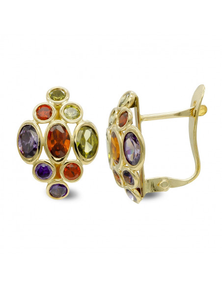 18K PENDIENTES ORO AMARILLO PIEDRAS COLORES CIERRE CATALAN
