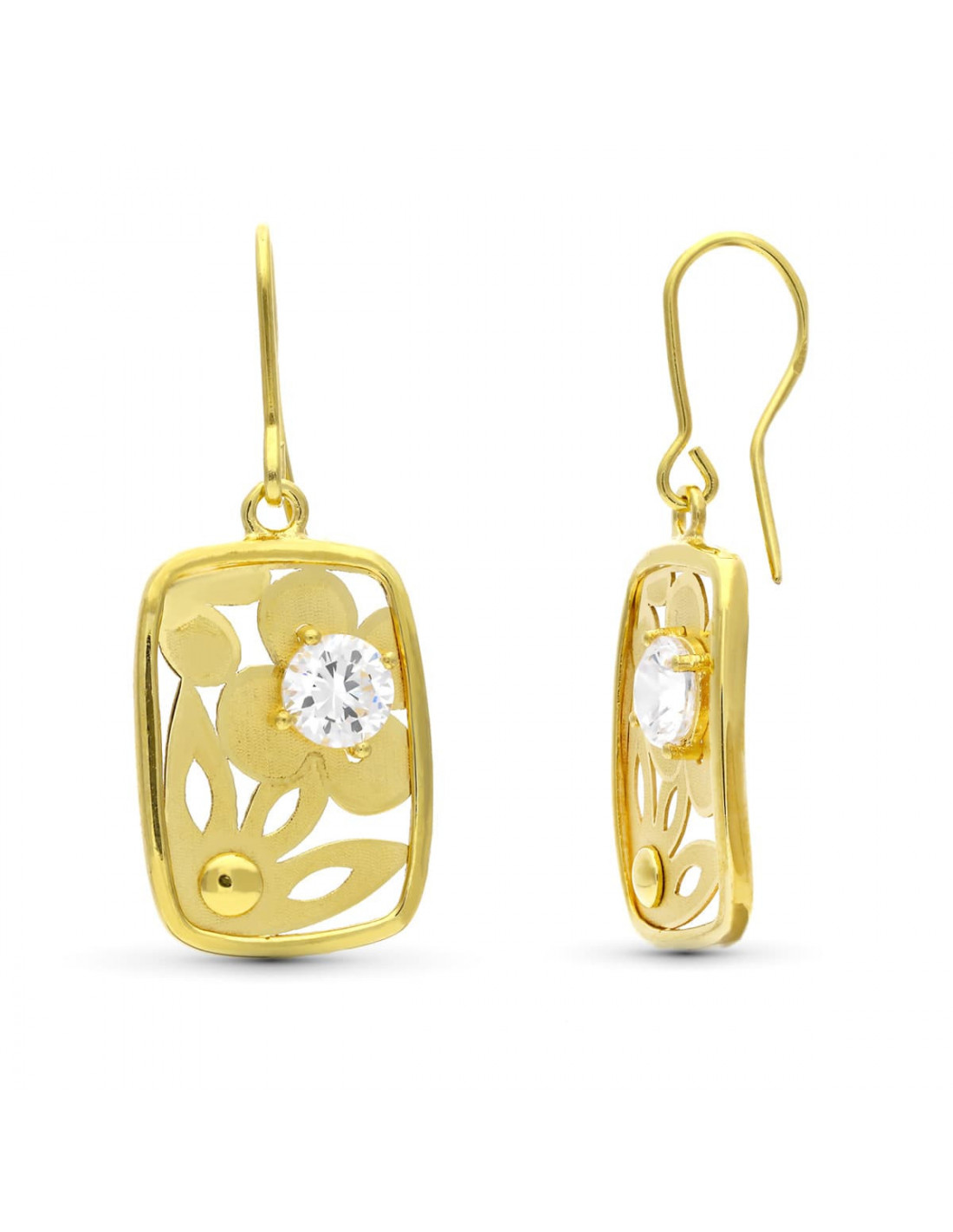 18K PENDIENTES ORO AMARILLO FLOR LASER CON CIRCONITA 22X14 MM
