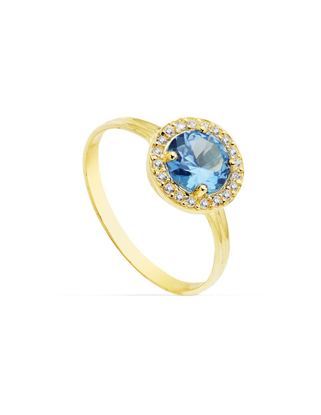 18K SORTIJA ORO AMARILLO MOTIVO REDONDO 9 MM PIEDRA AZUL 6 MM