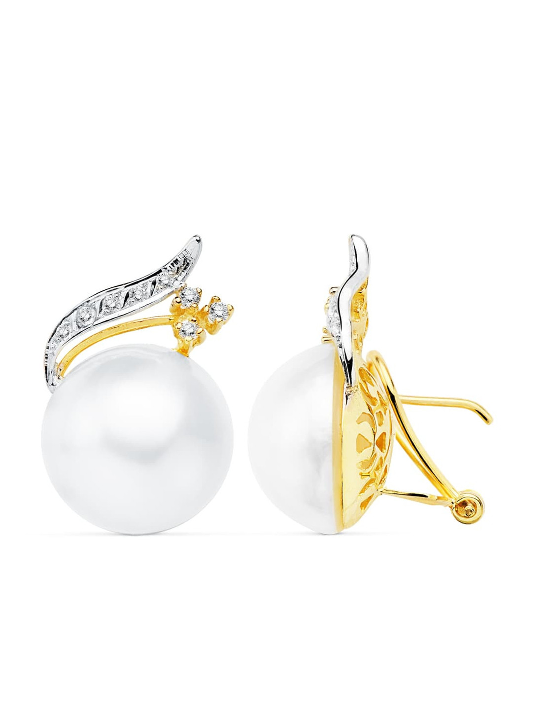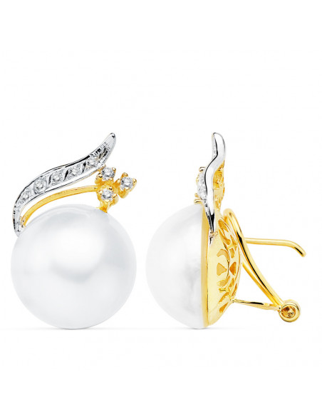 18K PENDIENTES ORO AMARILLO PERLA JAPONESAS 16 MM RAMA