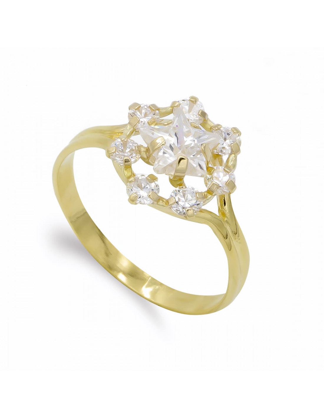 18K SORTIJA ORO AMARILLO ESTRELLA Y CIRCONITAS