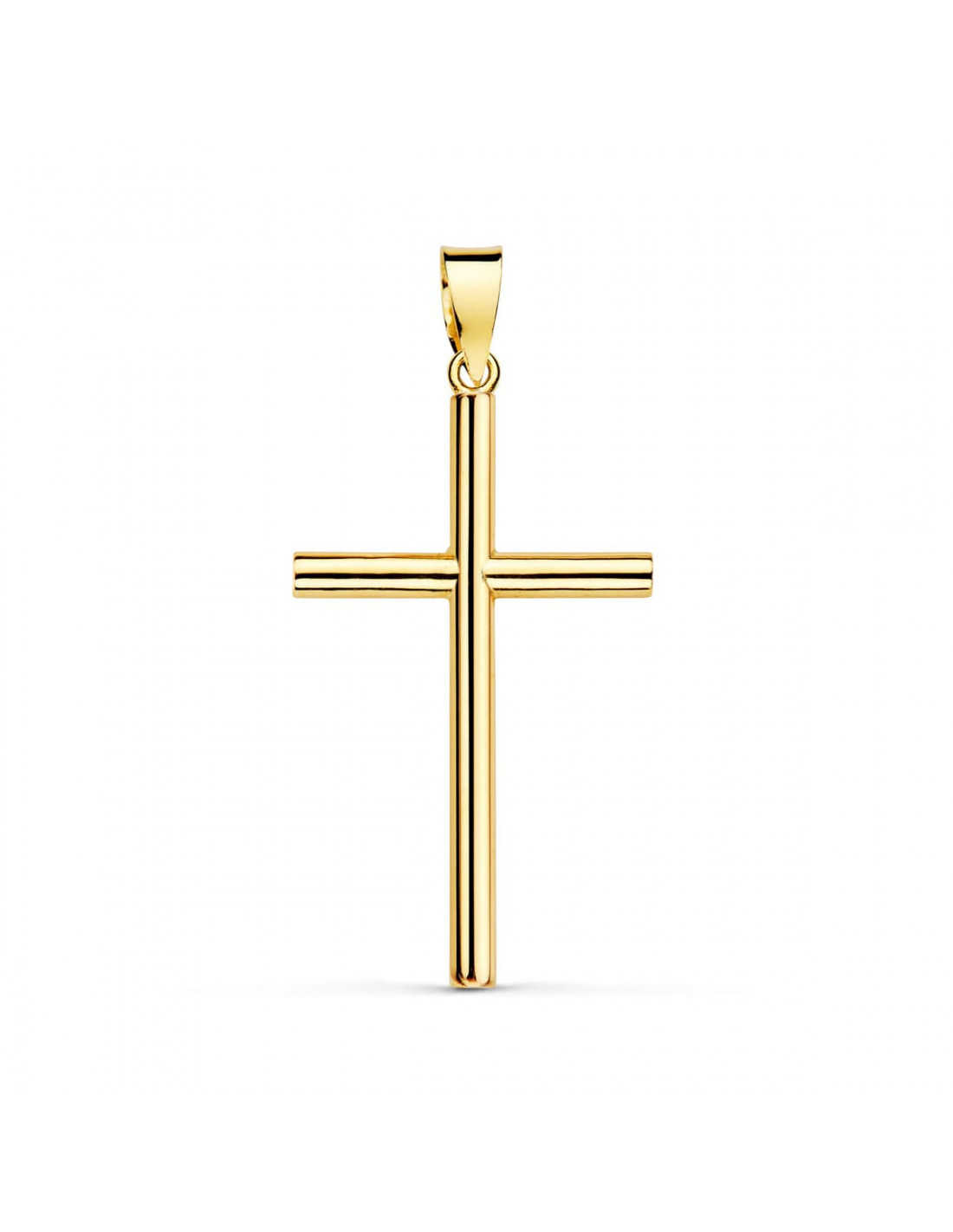 18K CRUZ ORO AMARILLO PALO LISO HUECO 26X15X2 MM