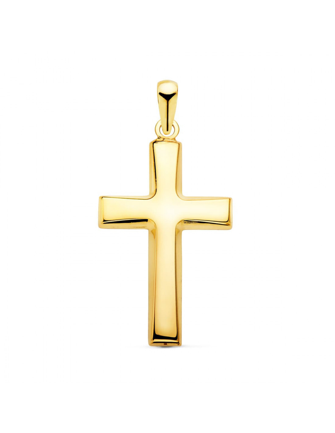 18K CRUZ ORO AMARILLO LISA PLANA HUECA EN BRILLO 25X16 MM