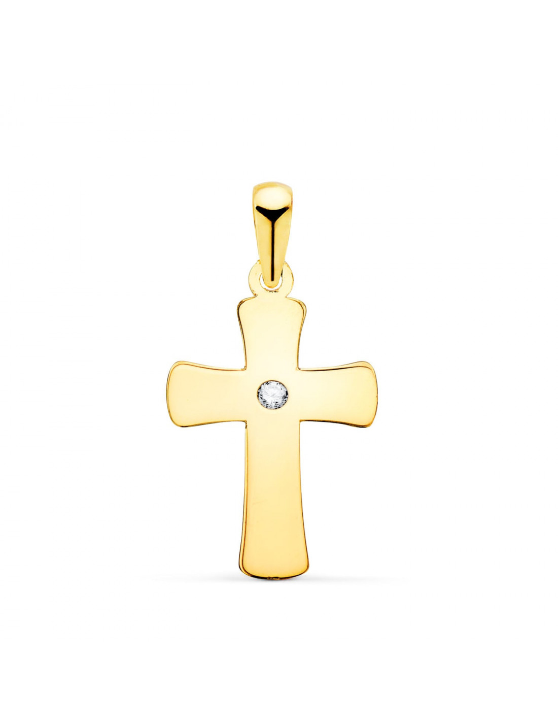 18K CRUZ ORO AMARILLO LISA EN BRILLO CON CIRCONITA 20 X 12 MM