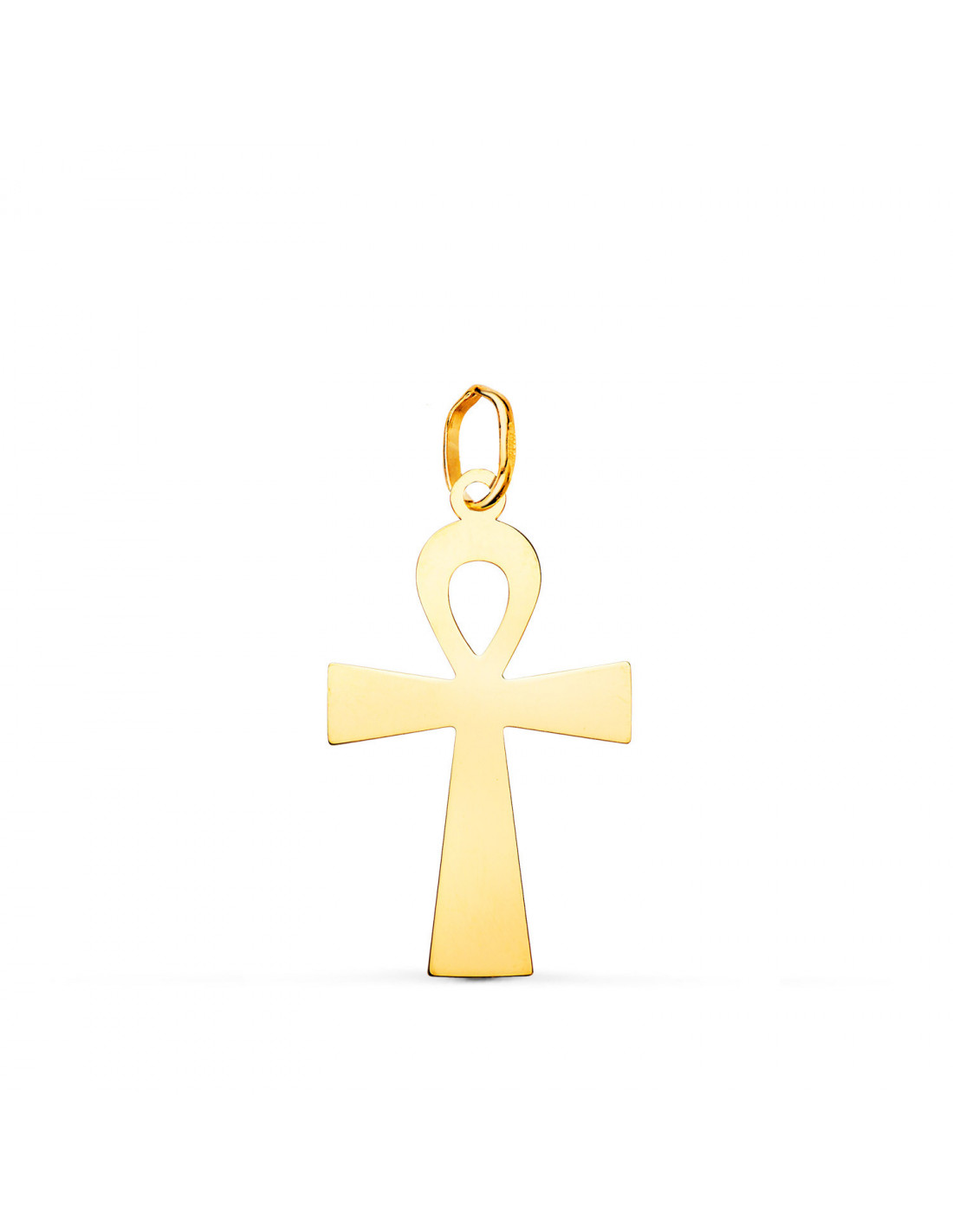 18K COLGANTE ORO AMARILLO BRILLO CRUZ DE LA VIDA 22 X 13 MM
