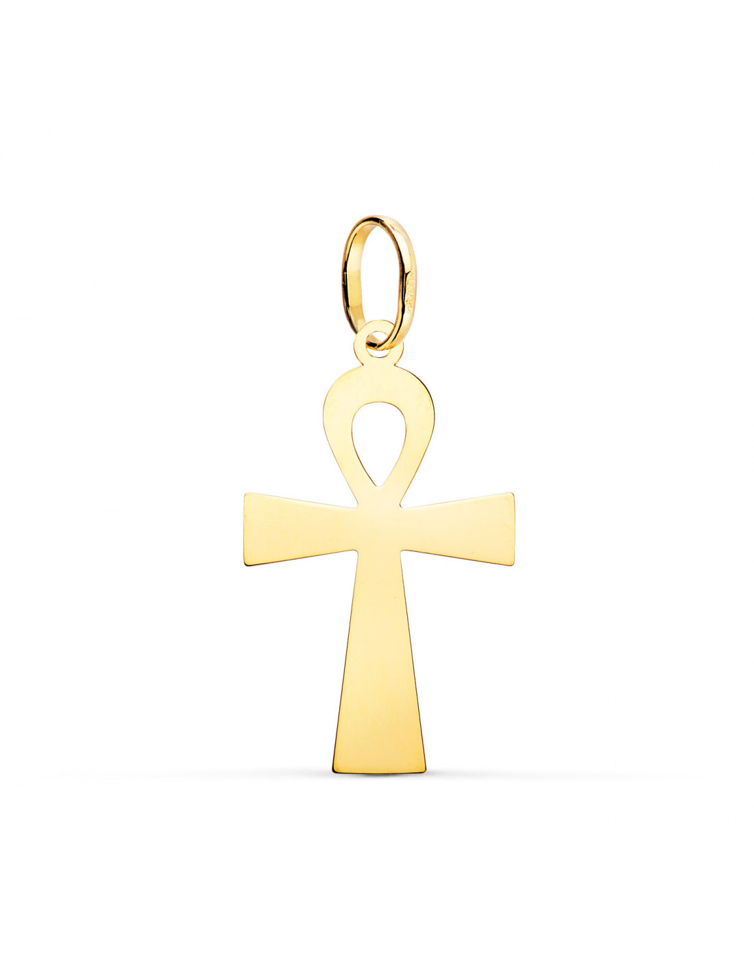 18K COLGANTE ORO AMARILLO BRILLO CRUZ DE LA VIDA 28 X 16 MM