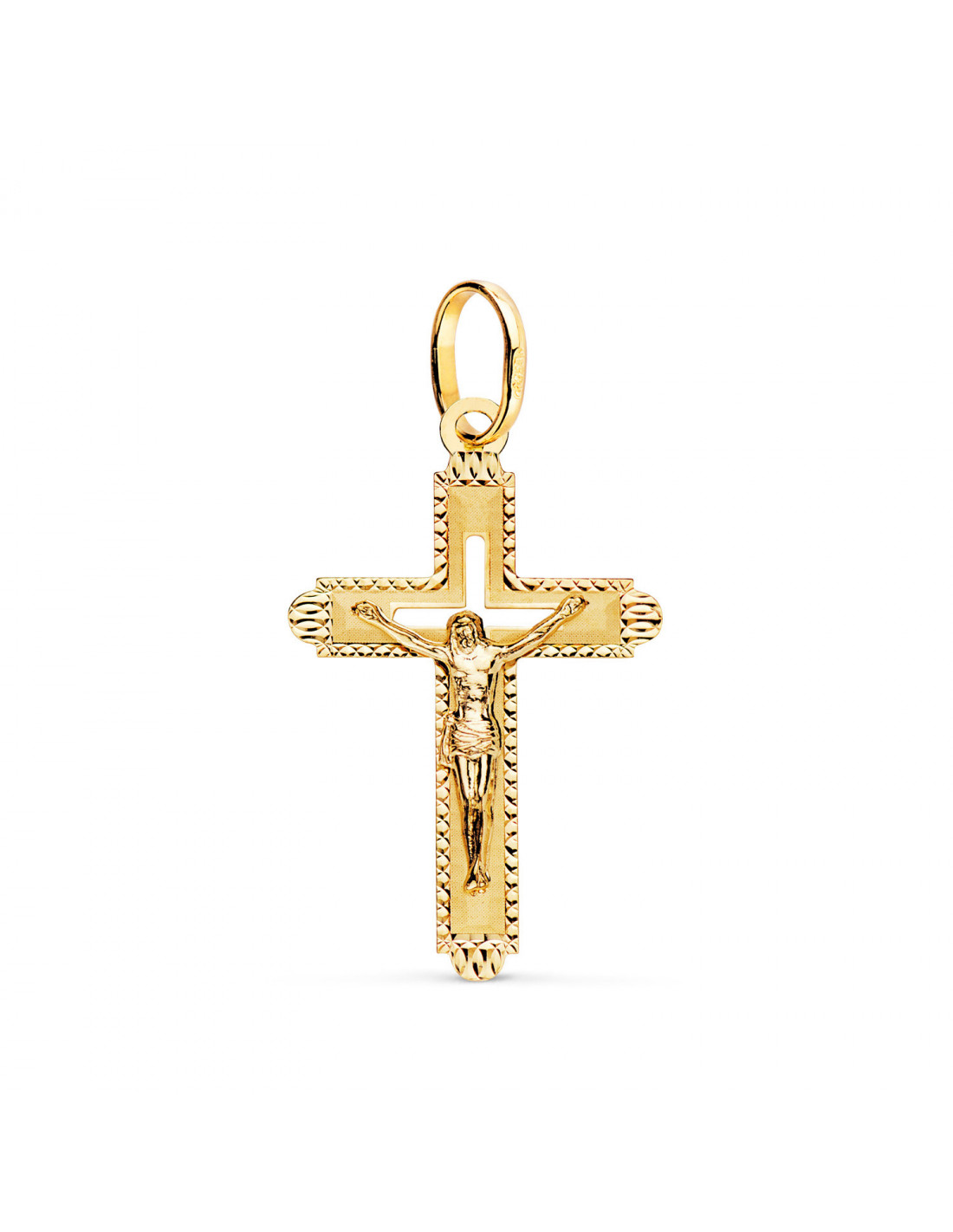18K CRUZ ORO AMARILLO CON CRISTO TALLADA 27 X 17 MM