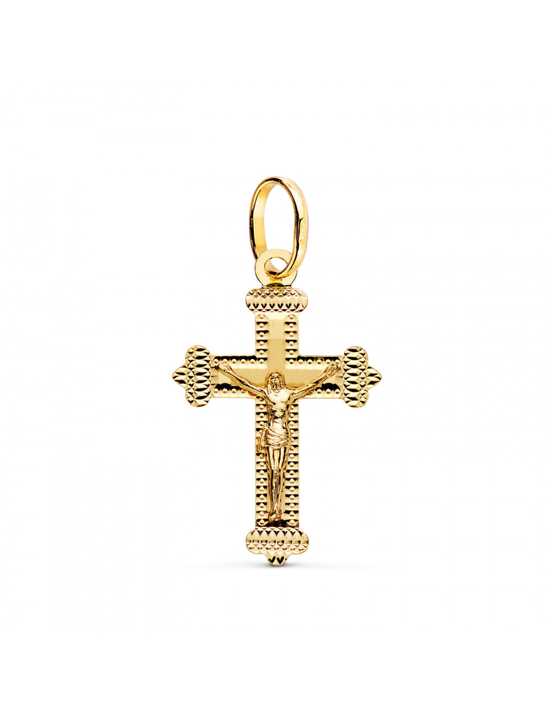 18K CRUZ ORO AMARILLO CON CRISTO TALLADA 27 X 18 MM