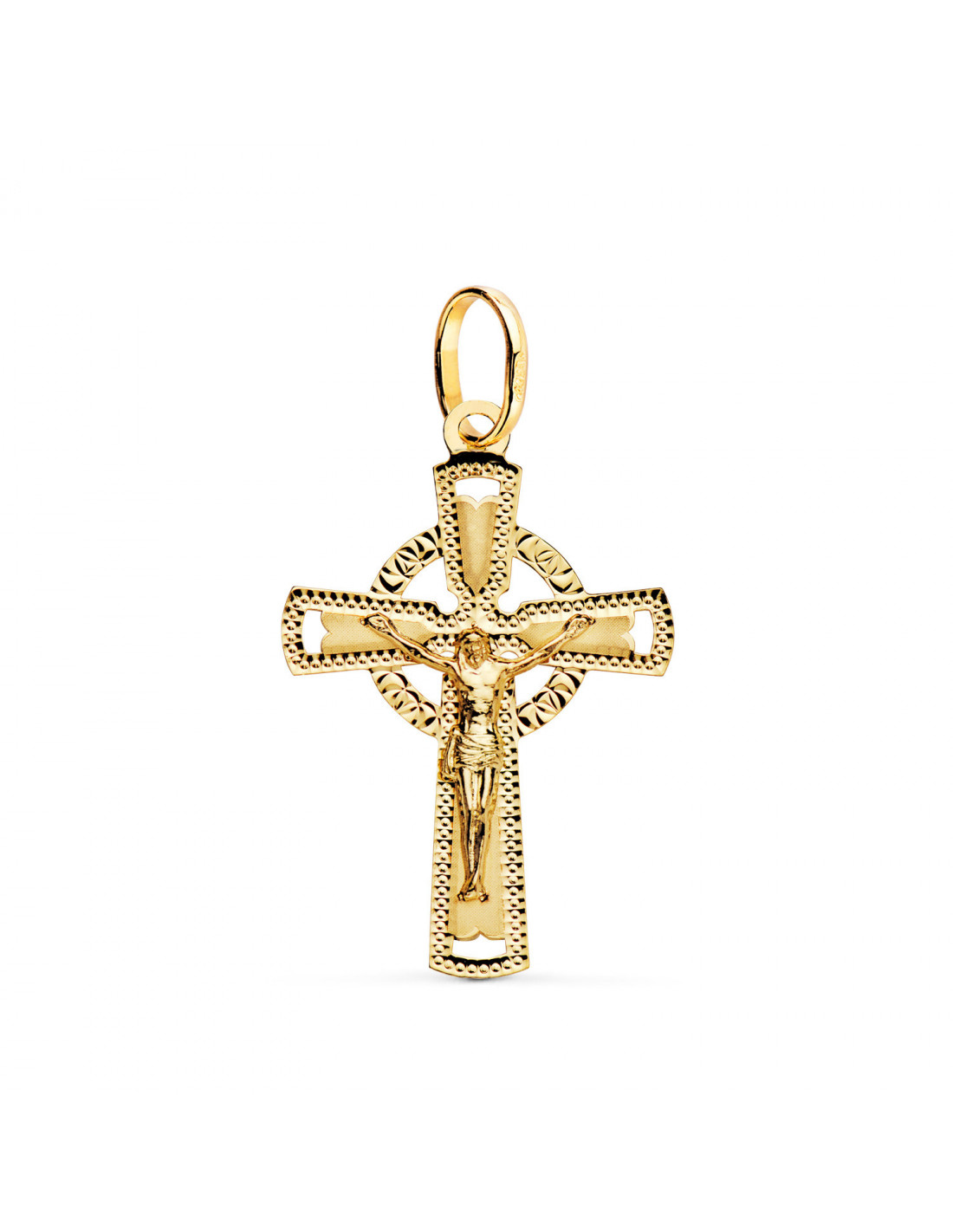 18K CRUZ ORO AMARILLO CON CRISTO TALLADA 28 X 18 MM