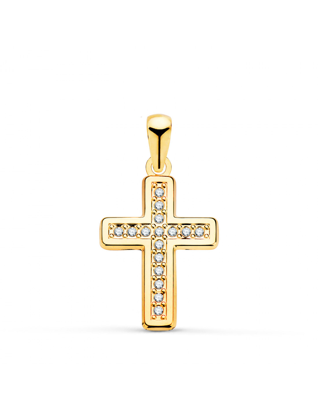 18K CRUZ ORO AMARILLO CON CIRCONITAS 19 X 13 MM