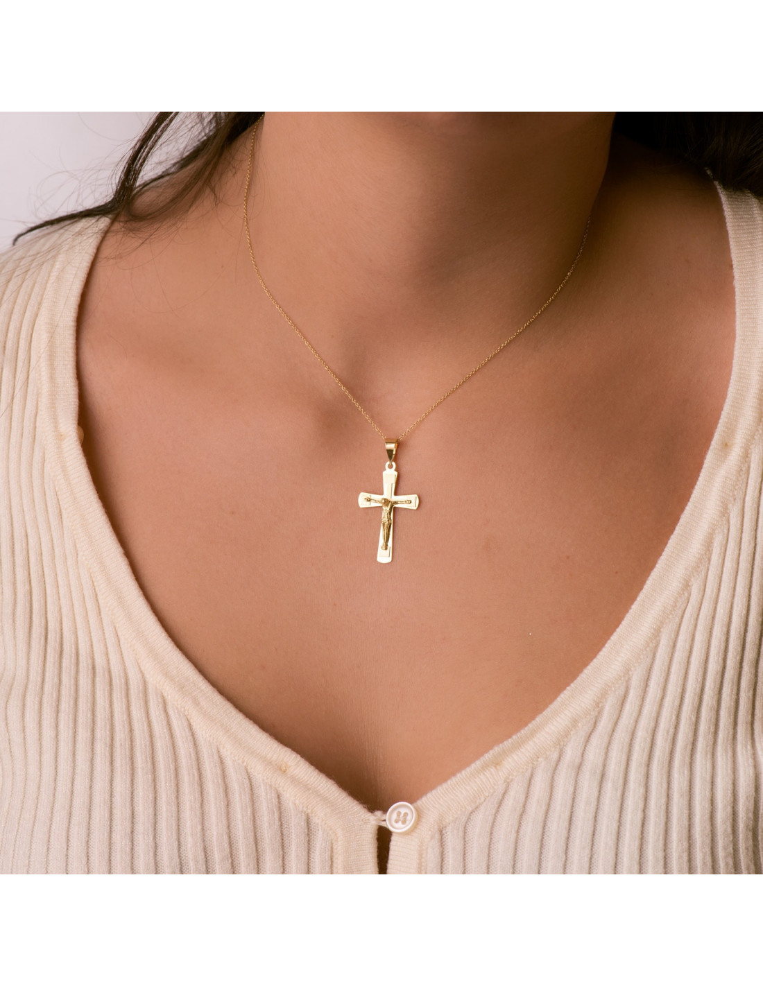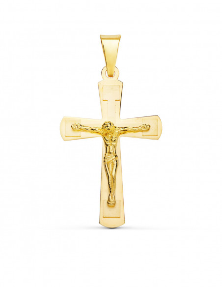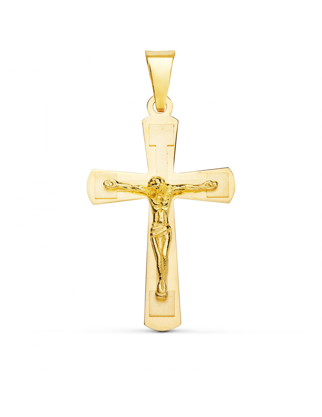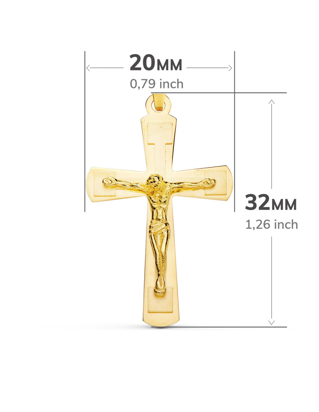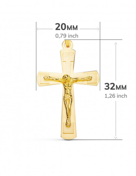 18K CRUZ ORO AMARILLO BRILLO Y MATE CON CRISTO 32X20 MM