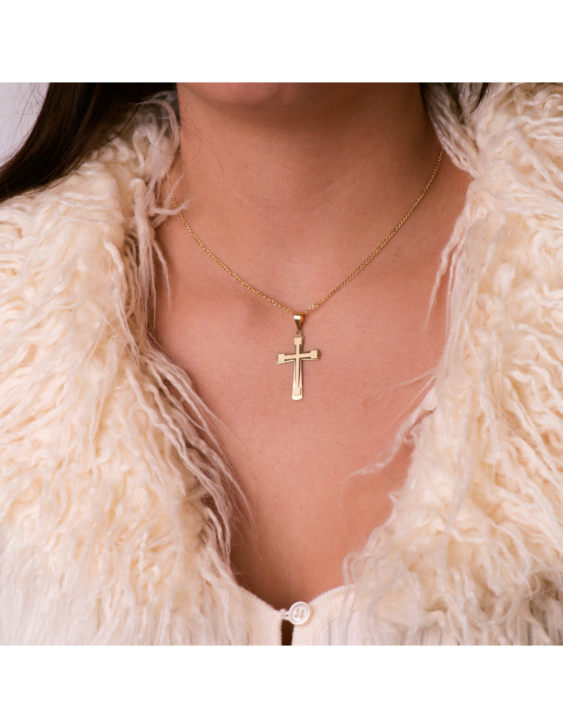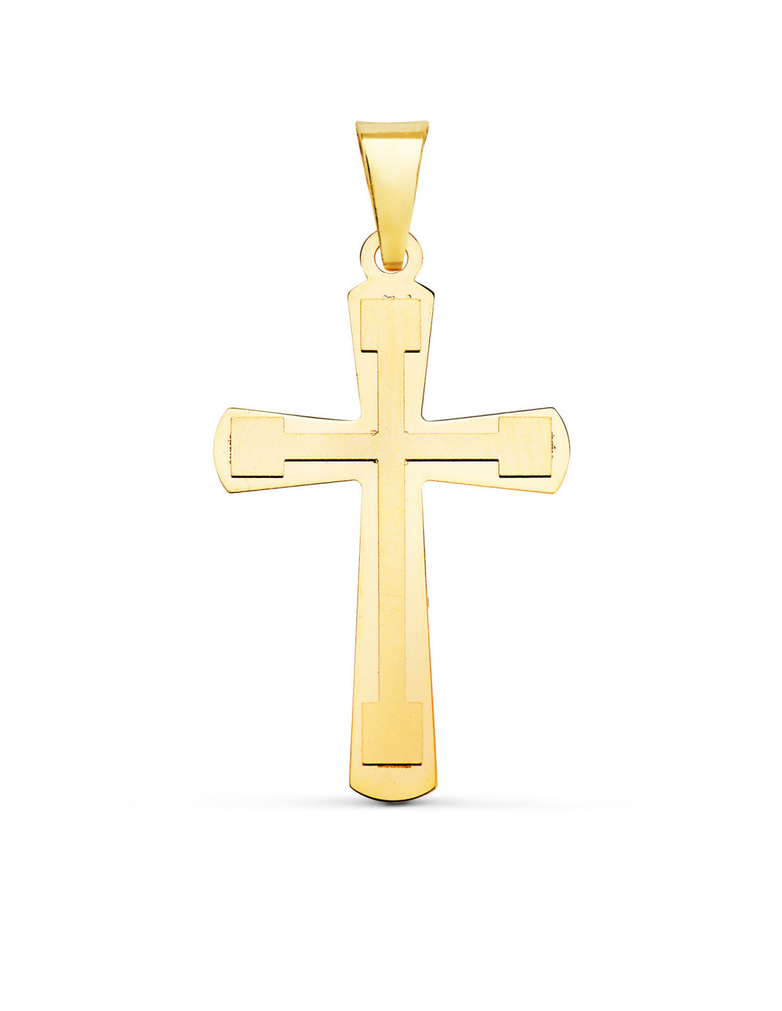 18K CRUZ ORO AMARILLO BRILLO Y MATE SIN CRISTO 33X20 MM