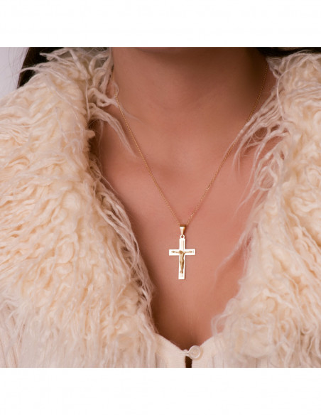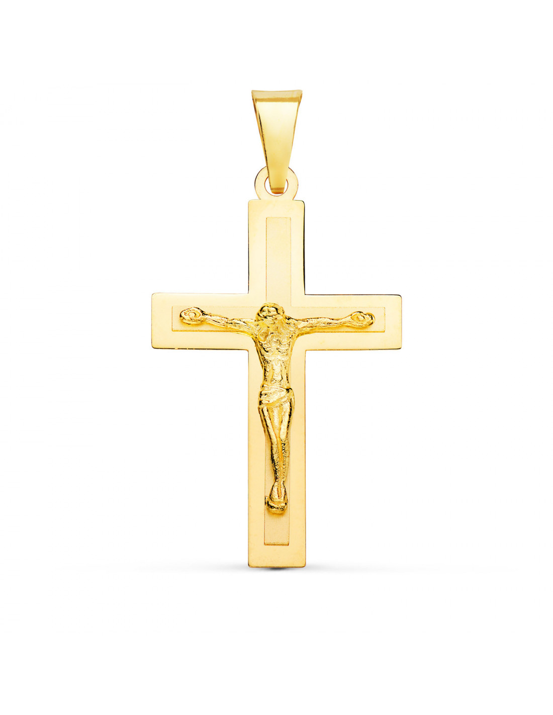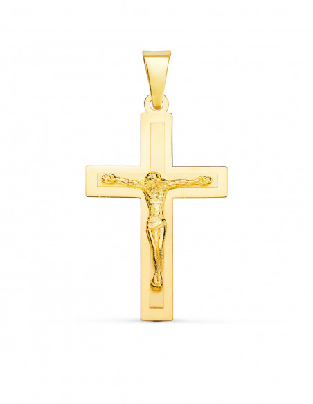 18K CRUZ ORO AMARILLO BRILLO Y MATE CON CRISTO 32X20 MM