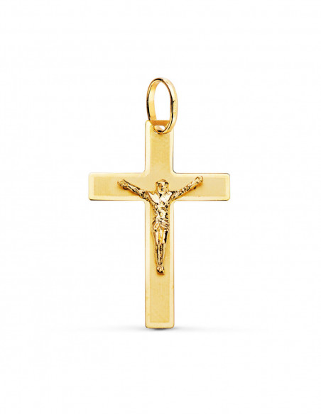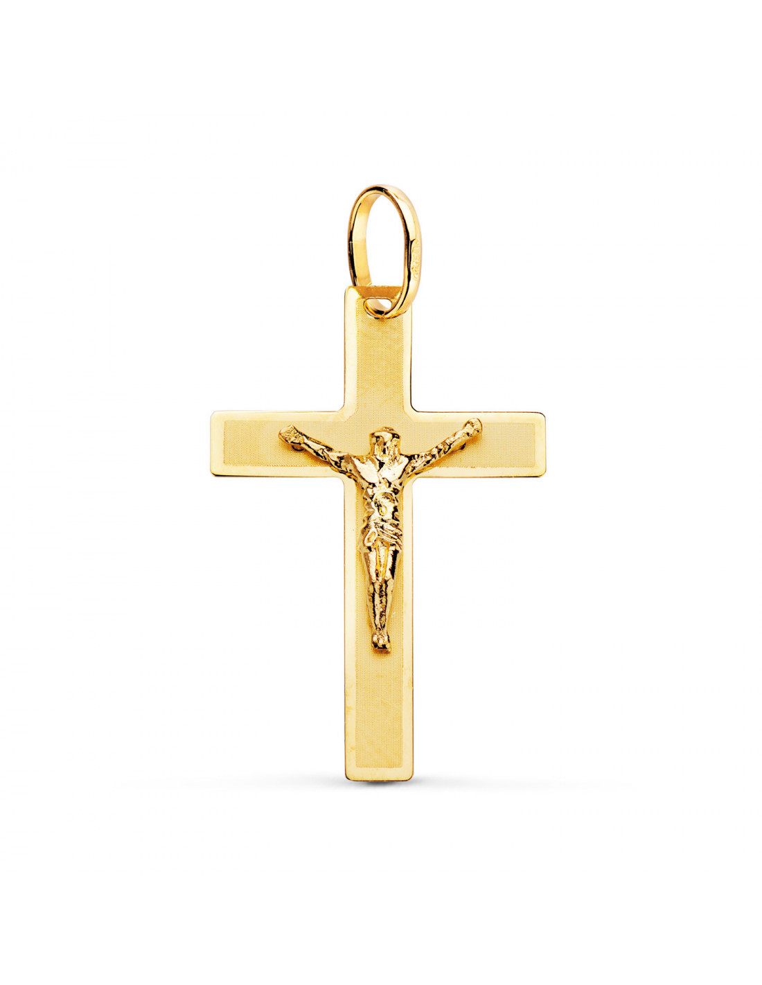 18K CRUZ ORO AMARILLO CON CRISTO MATIZADA 29X20 MM