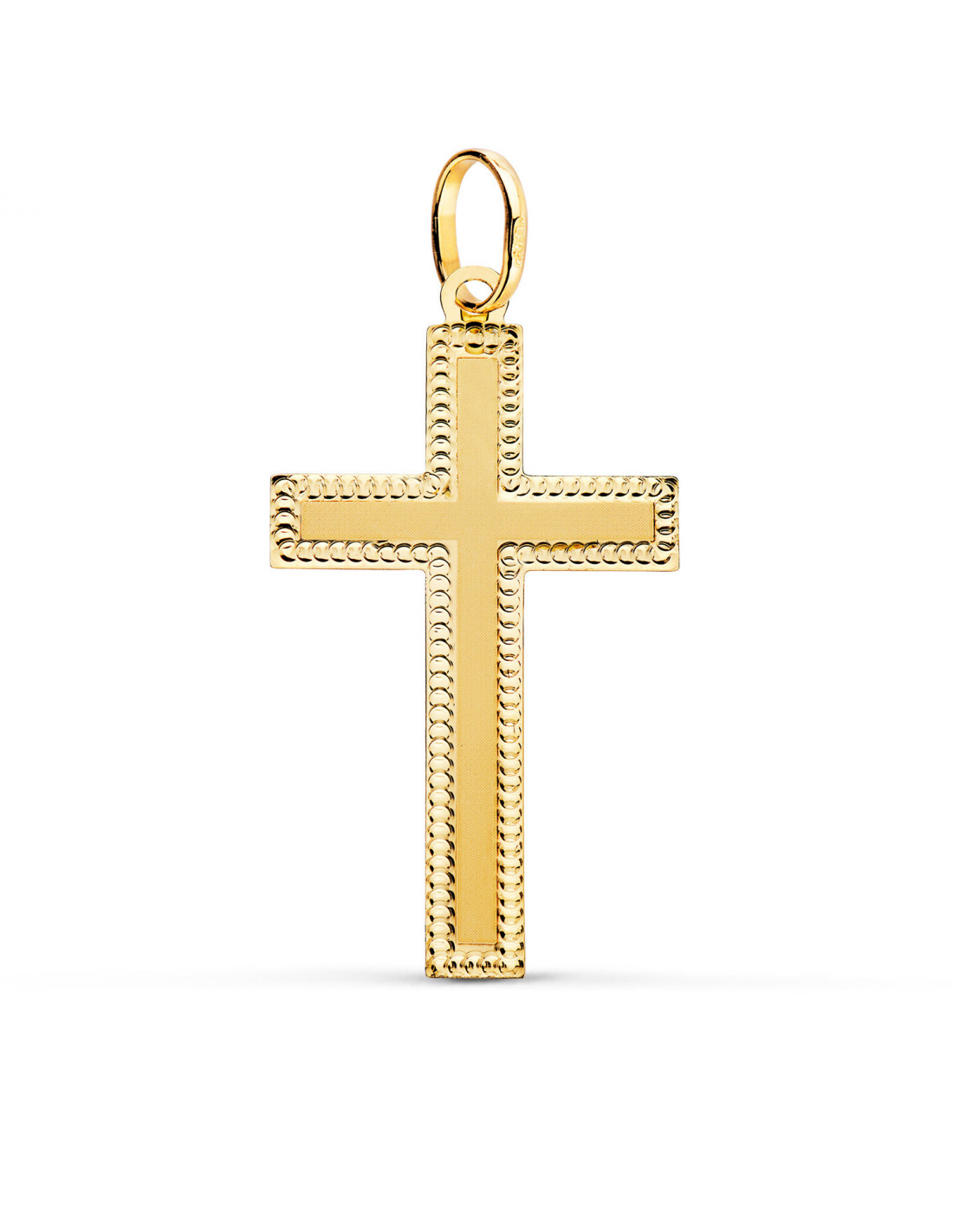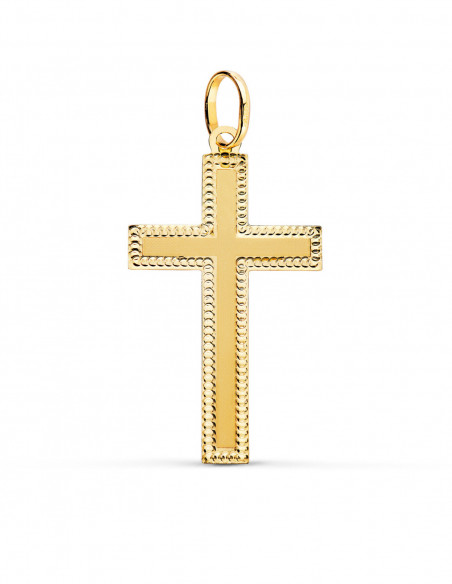 18K CRUZ ORO AMARILLO SIN CRISTO BORDES TALLADOS 35X20 MM