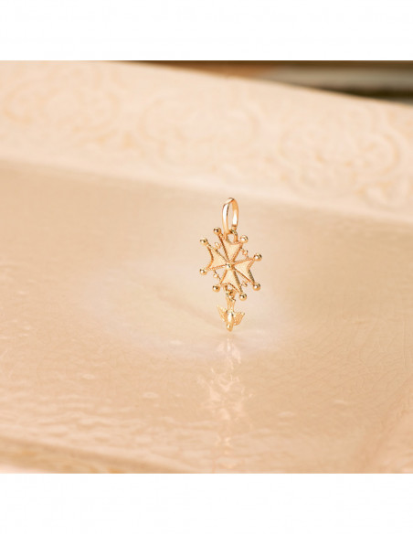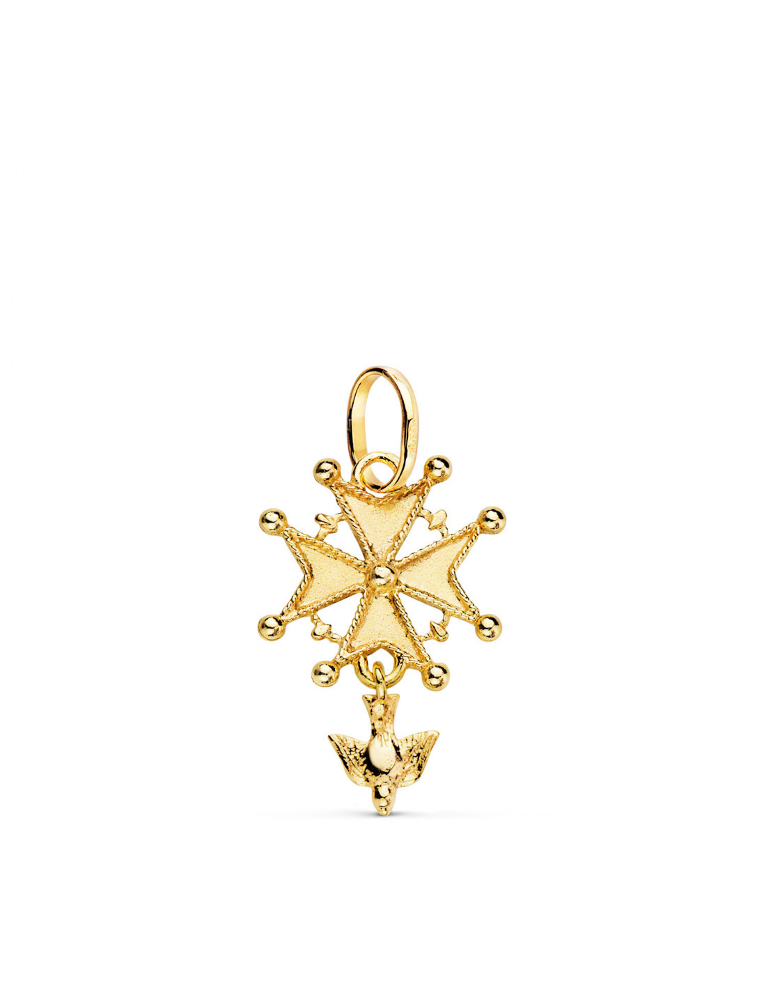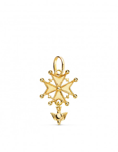 18K CRUZ DE HUGUENOTTE ORO AMARILLO CON PALOMA. 23 X 15 MM