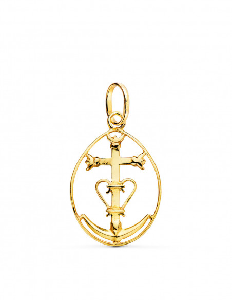 18K COLGANTE ORO AMARILLO CRUZ DE LA CAMARGA CON CERCO. 25 X 17 MM