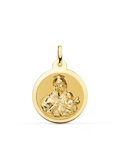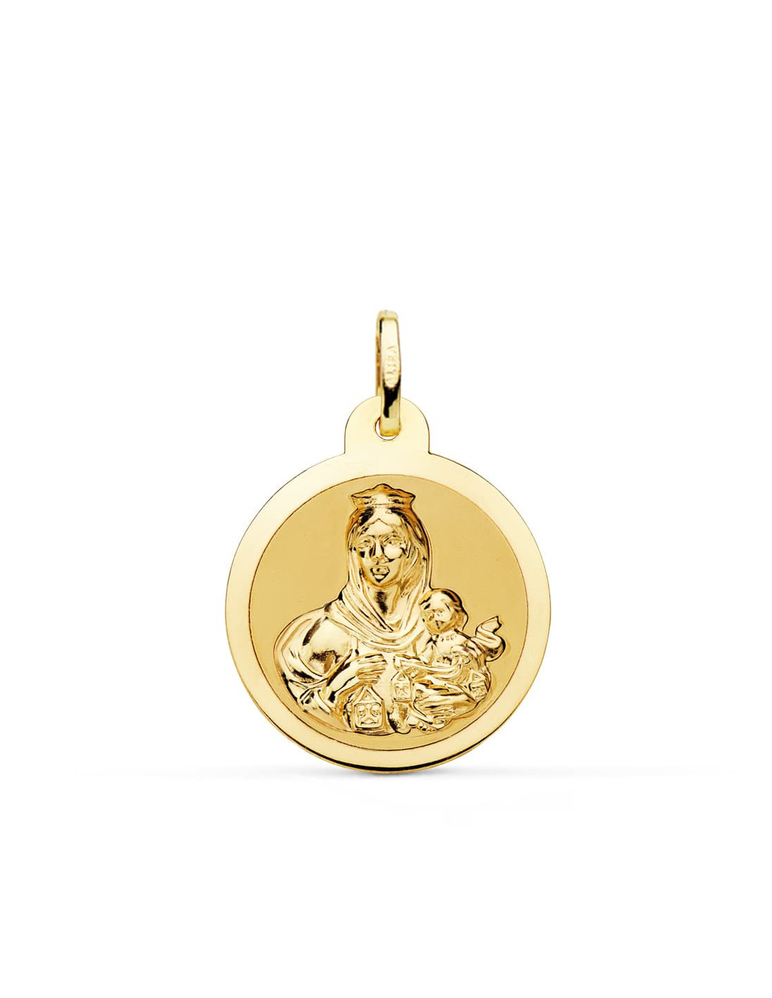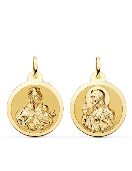 18K ESCAPULARIO BRILLO VIRGEN DEL CARMEN Y CORAZON DE JESUS 22 MM