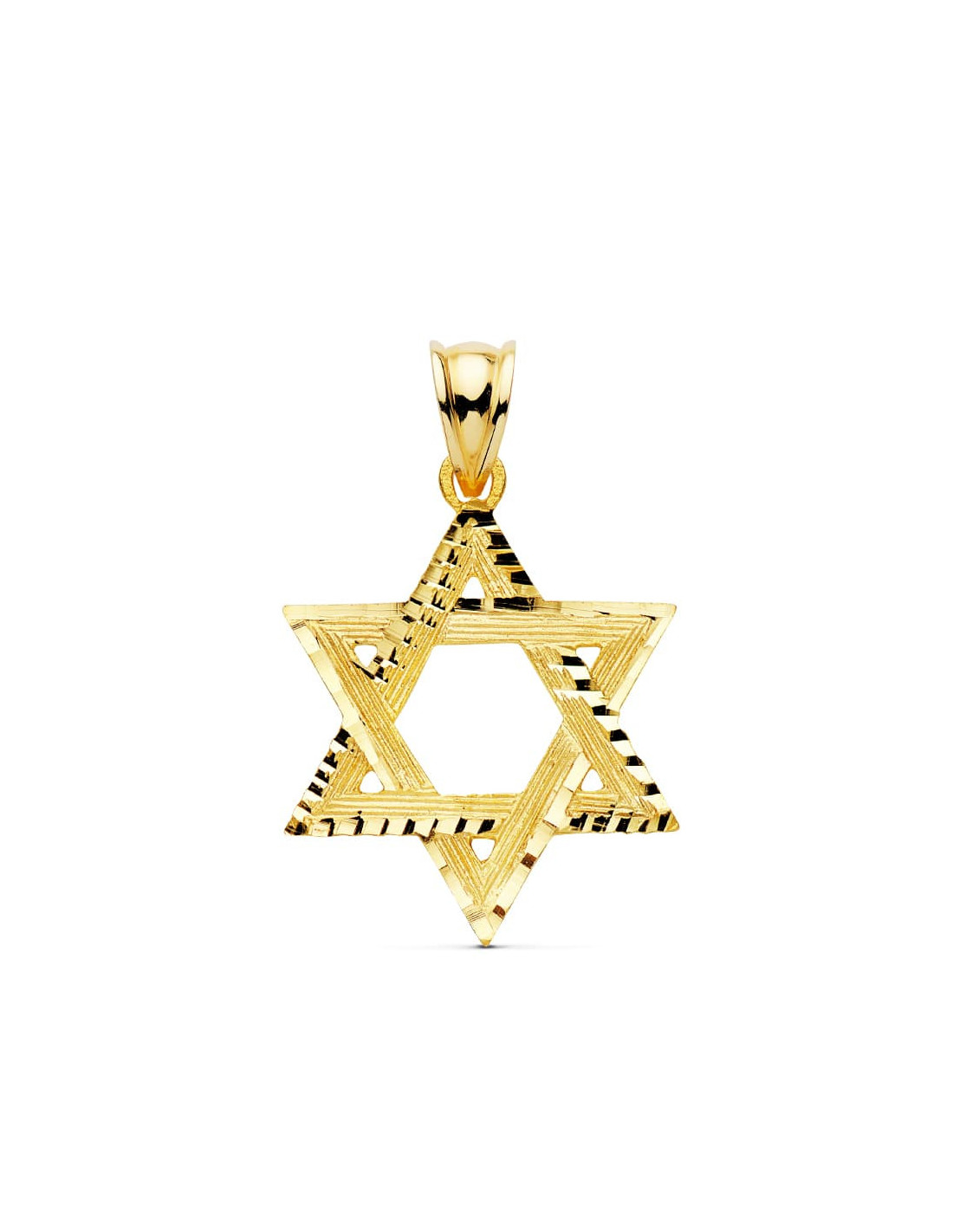 18K COLGANTE ORO AMARILLO ESTRELLA DE DAVID TALLADA 31X25 MM