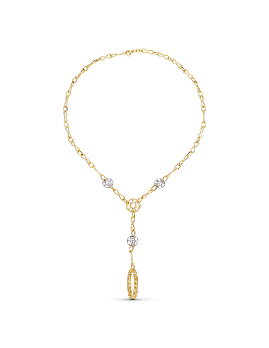 18K GARGANTILLA ORO BICOLOR MOTIVOS Y HOJAS BRILLO