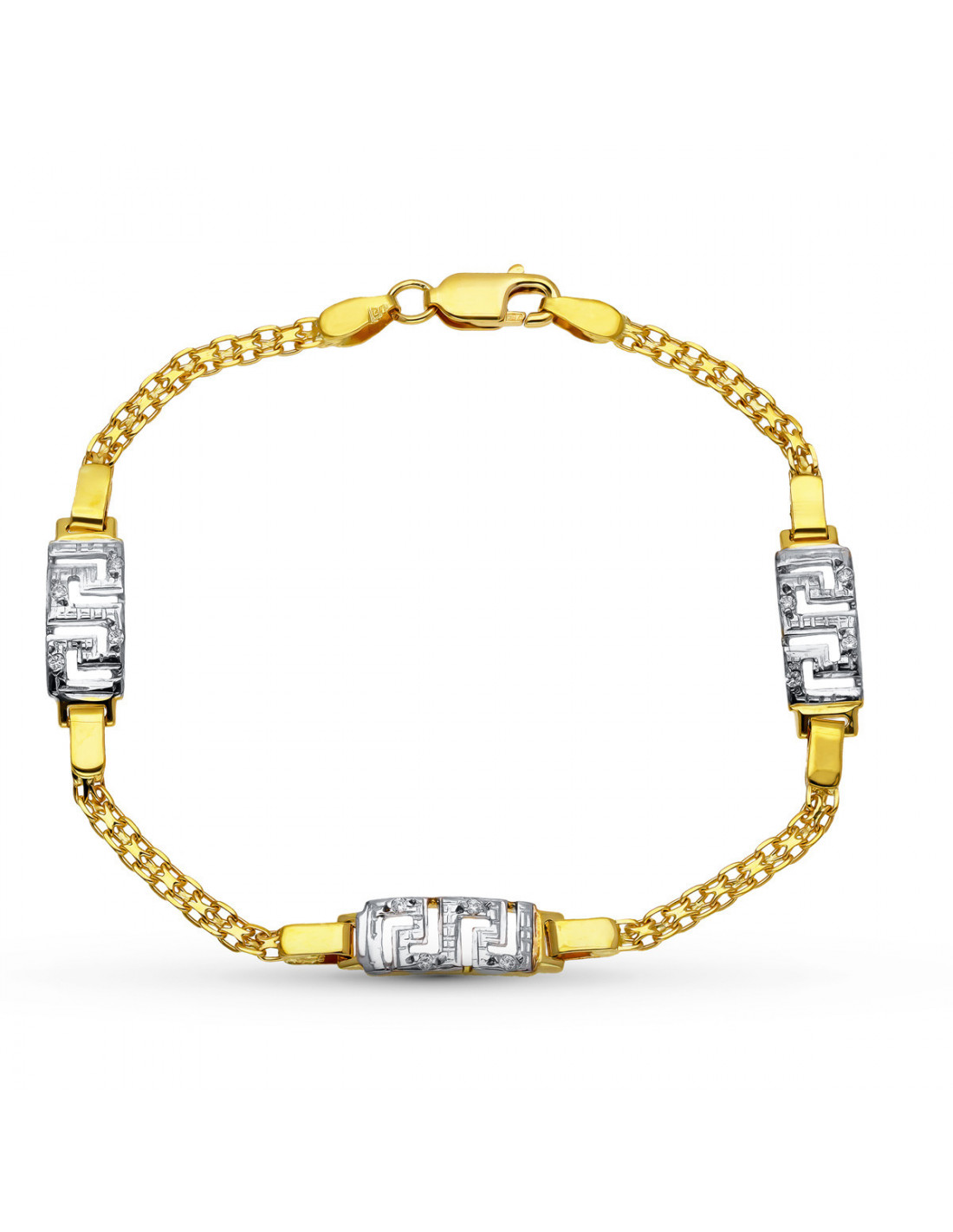 18k PULSERA ORO BICOLOR JUEGO COMUNION 4 CIRCONITAS CADENA ESTERILLA