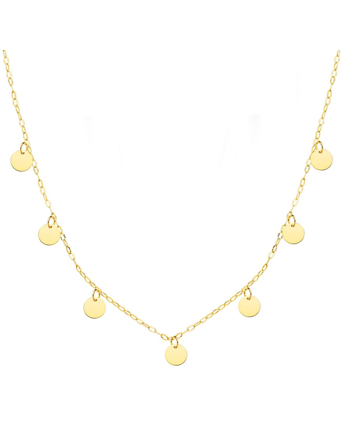 18K GARGANTILLA ORO AMARILLO CHAPAS REDONDAS 5 MM CADENA FORZADA 45 CM