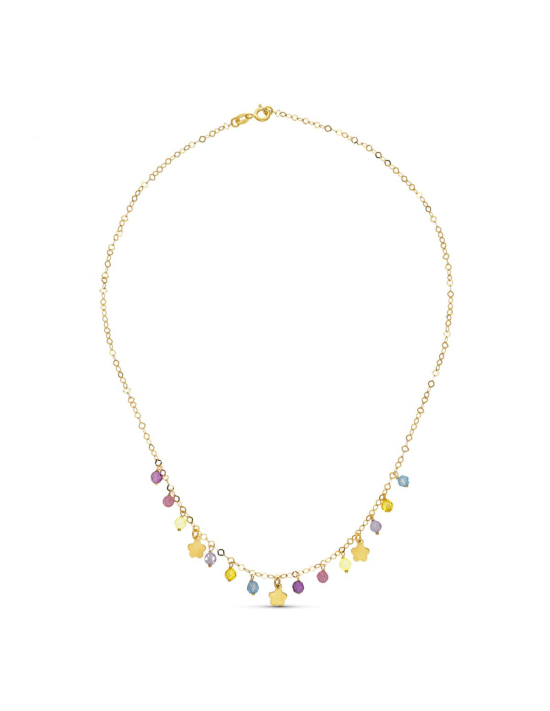 18K GARGANTILLA ORO AMARILLO FLORES Y PIEDRAS COLORES