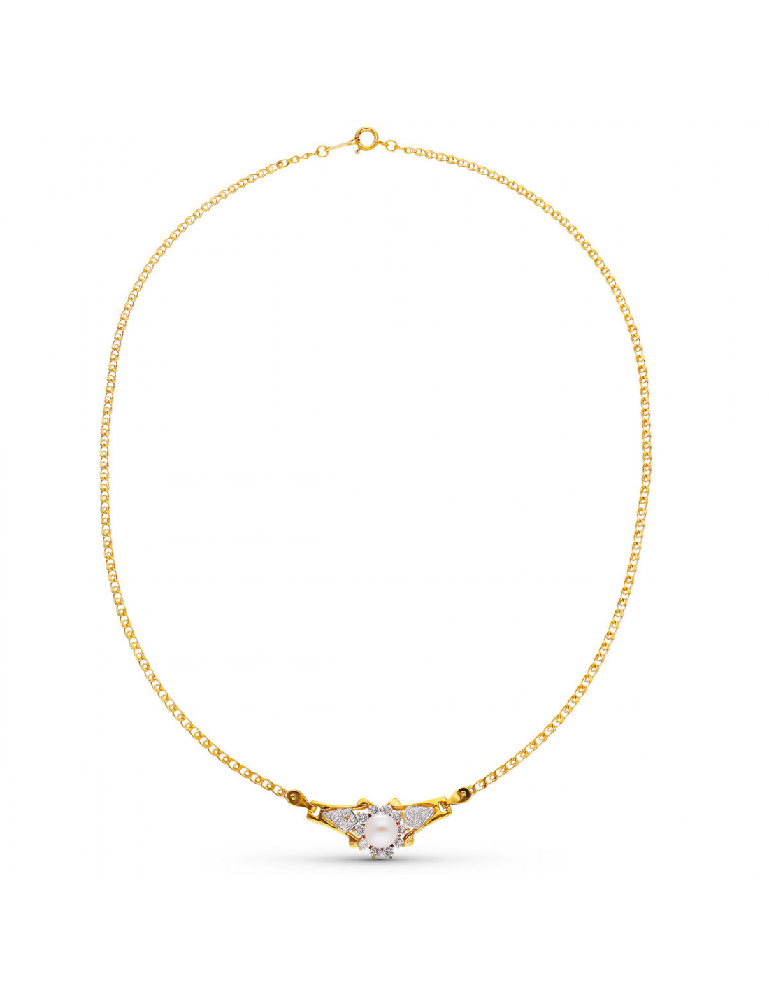 18K GARGANTILLA ORO BICOLOR PERLA Y CIRCONITAS
