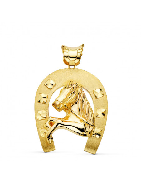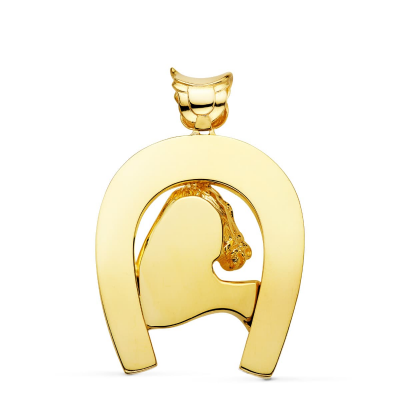 18K COLGANTE ORO AMARILLO HERRADURA CON CABALLO 48X40 MM