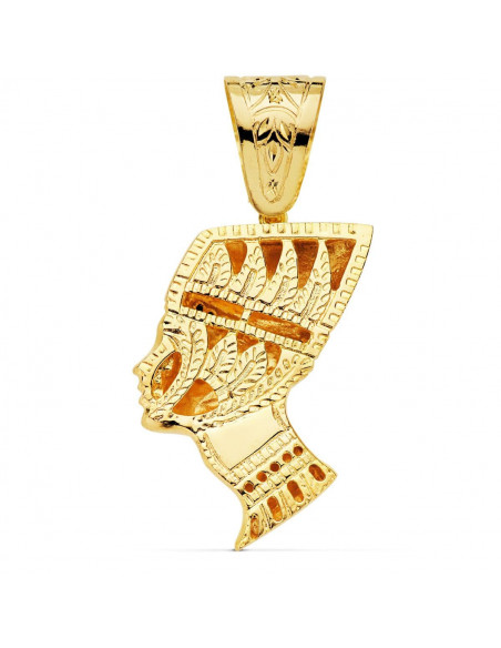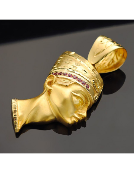 18K COLGANTE ESFINGE NEFERTITI GIGANTE CON CIRCONITAS ROJAS. 50X35 MM