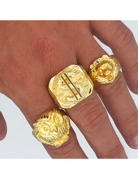 18K SELLO ORO AMARILLO MACIZO CABEZA DE BUHO TALLADO 22X22 MM