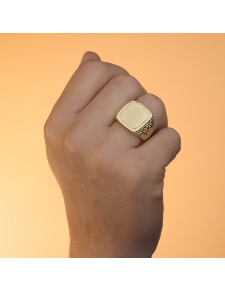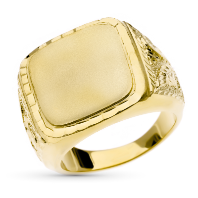 18K SELLO ORO AMARILLO CABALLERO CUADRADO MATE Y BRILLO Y TALLA 20X20 MM