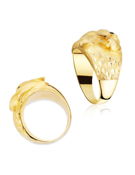 18K SELLO ORO AMARILLO MACIZO PUMA OJO ZAFIRO NATURAL. ANCHO 18 MM