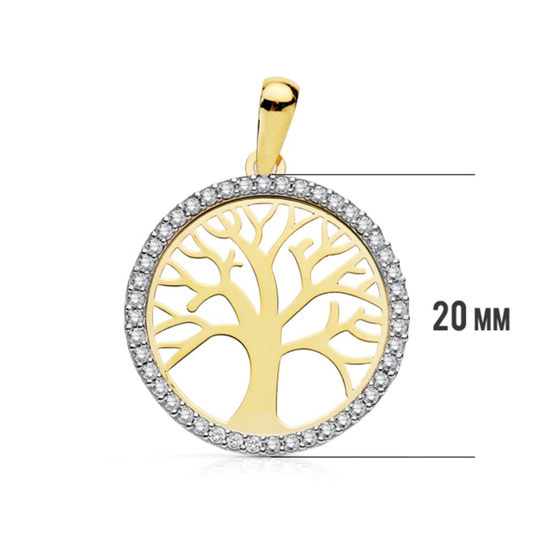 Colgante árbol de la vida en oro de 18k y forma circular. Colgante bicolor diseñado con circonitas brillantes en oro amarillo y oro blanco, calado con la forma del árbol de la vida. ¡El mejor regalo!